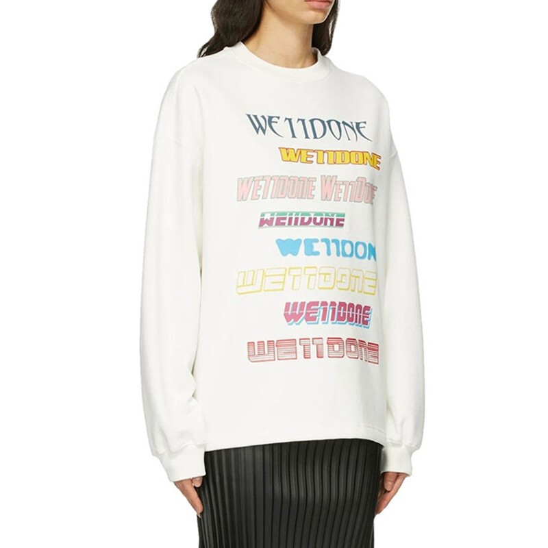 (赵露思同款)WE11DONE 多排彩色Logo弹幕圆领宽松套头卫衣送礼推荐 男女同款 白色 WDTP519114U-WH-XS