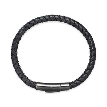 Men's Black Leather Bangle Bracelet in Stainless Steel