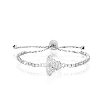 Cubic Zirconia Bee Adjustable Bolo Bracelet In Silver Plate
