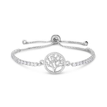 Cubic Zirconia Tree Of Life Adjustable Bolo Bracelet In Silver Plate