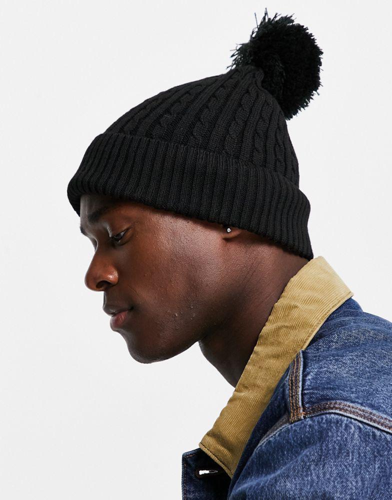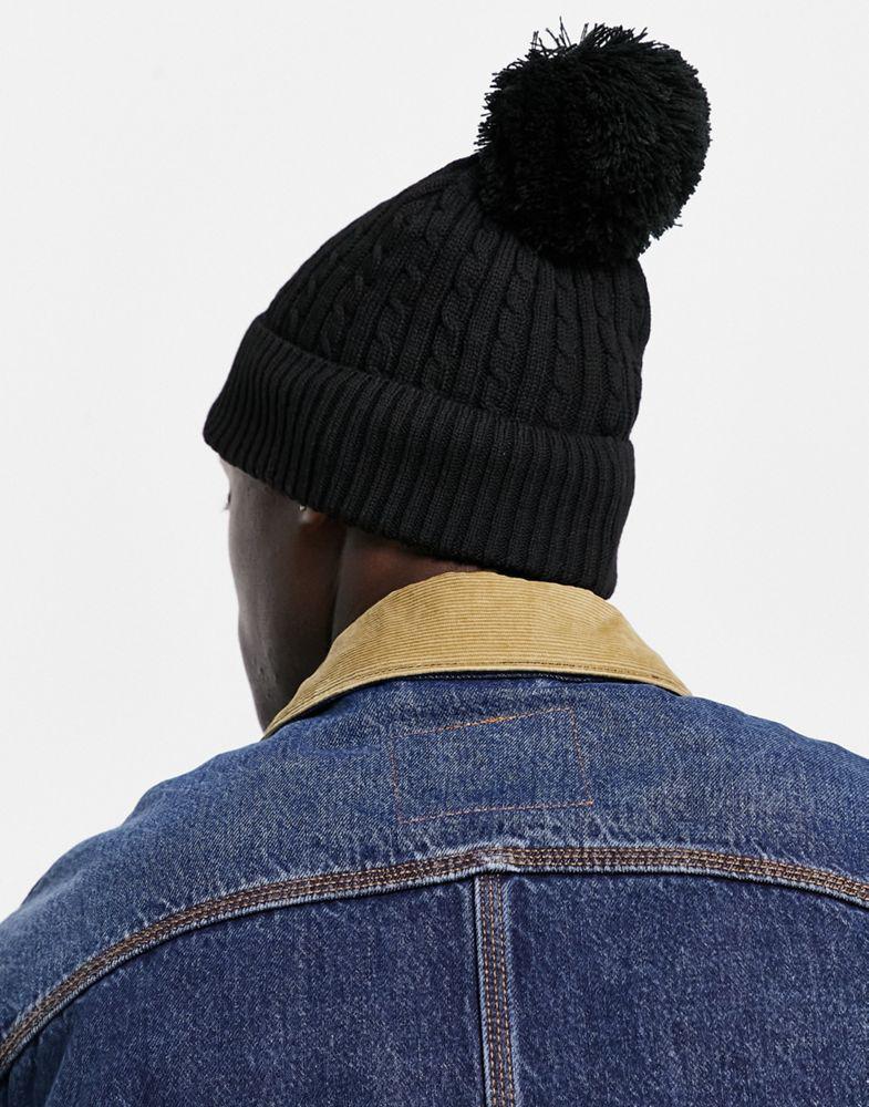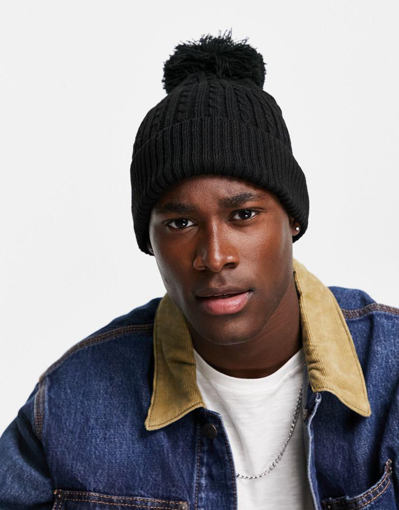 ASOS DESIGN bobble beanie with cable knit design in black