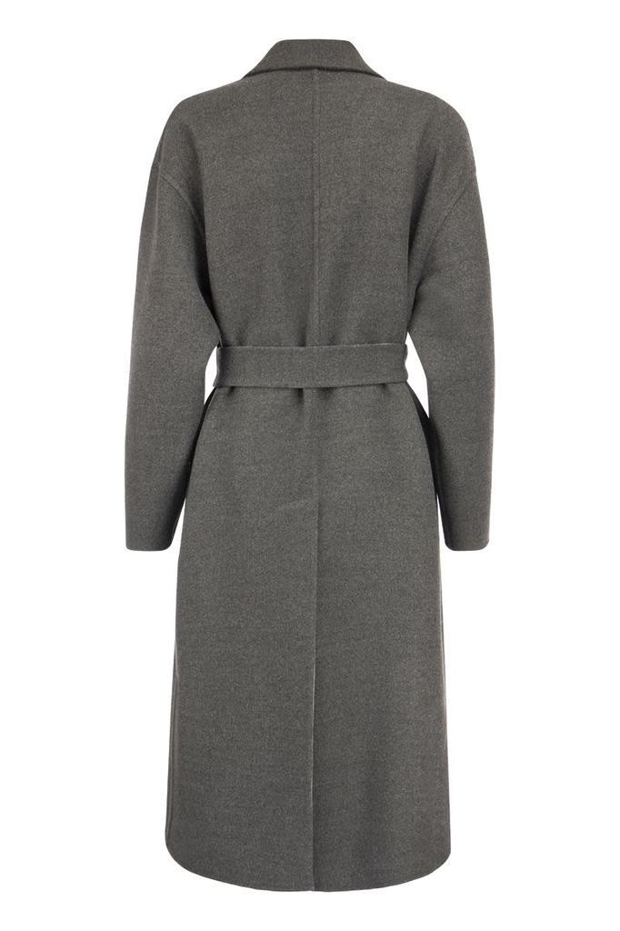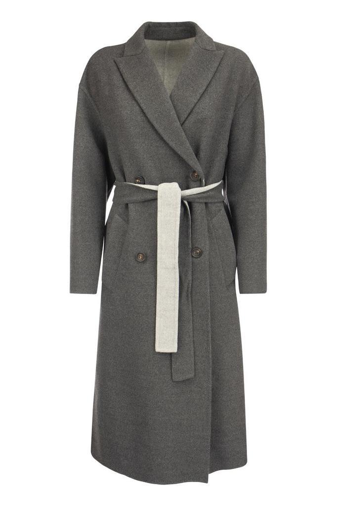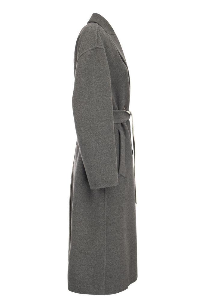 Place your bets on Brunello Cucinelli's timeless luxury with this powder coat in an elegant dressing gown silhouette. Crafted in Italy from pure virgin wool, it features a relaxed design with a double-breasted placket, horn buttons and a belt to cinch at the waist. - Slit pockets to the side - Double breasted placket DESIGNER ID: MQ4219688 C100