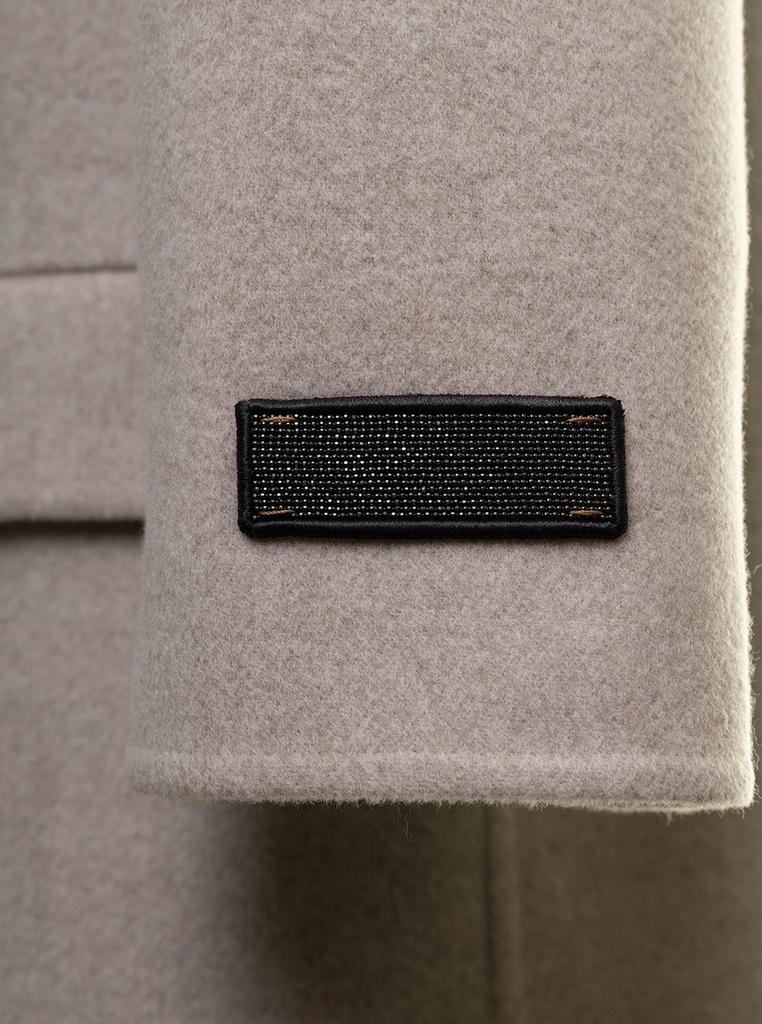 BRUNELLO CUCINELLI Prince of Wales cloth coat in alpaca and wool with jewellery