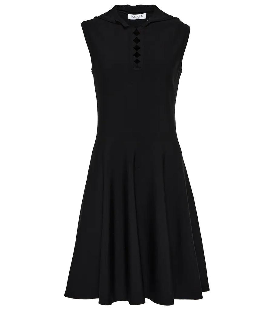 The hood on this minidress is a signature component of Alaïa's design DNA. Made from compact black knit with a fit-and-flare silhouette, it's finished with scalloped edges.