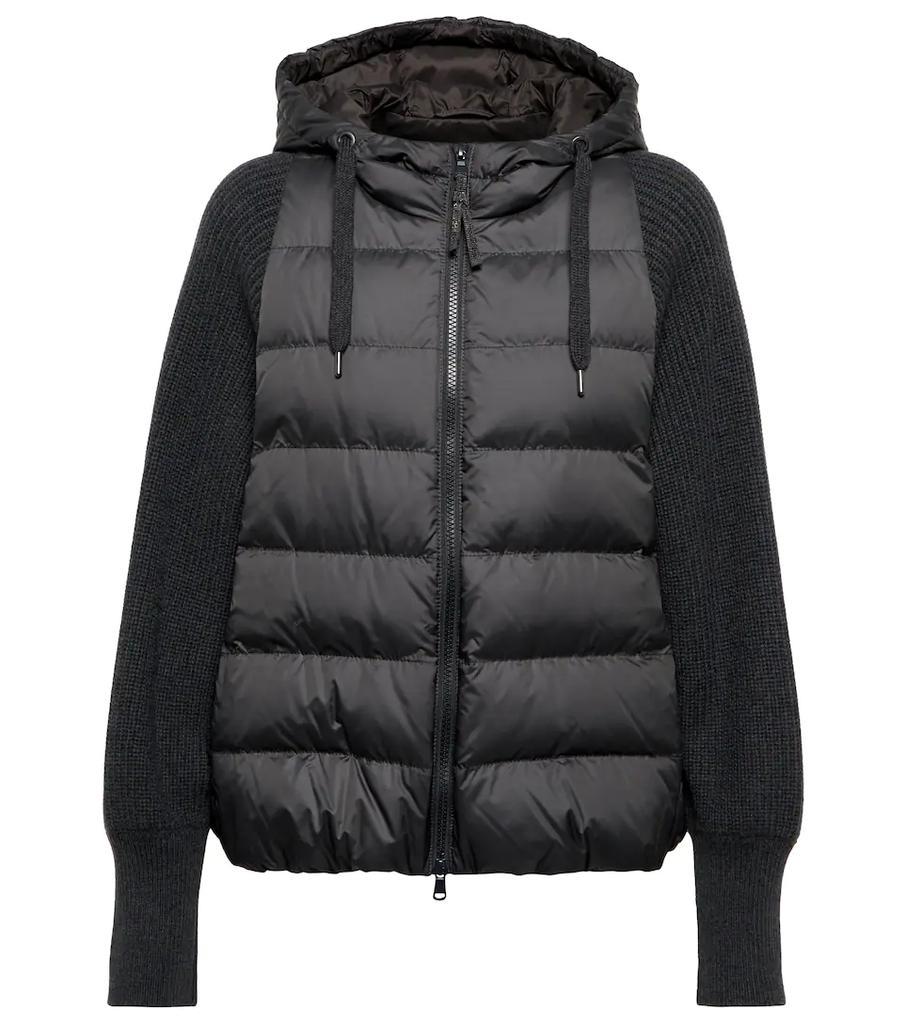 Brunello Cucinelli's buy now, wear forever ethos is encapsulated by this black jacket. It comprises a down-filled nylon bodice and ribbed-knit wool, cashmere and silk sleeves, while signature monili beads accent the zipper.