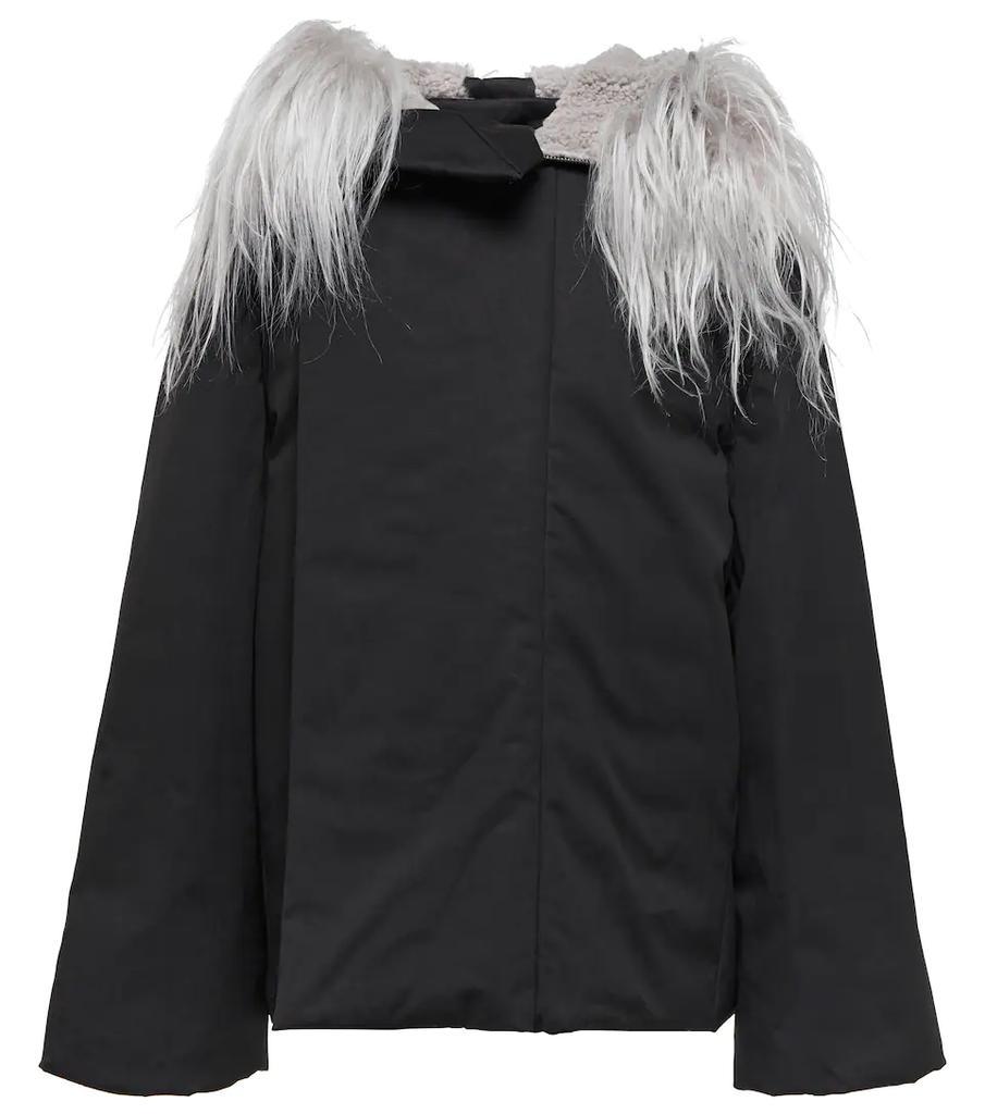 Rick Owens adds intrigue to this parka with plush fur trims atop the shoulders. It's made from a cotton-blend shell with wide sleeves and a tactile shearling lining.