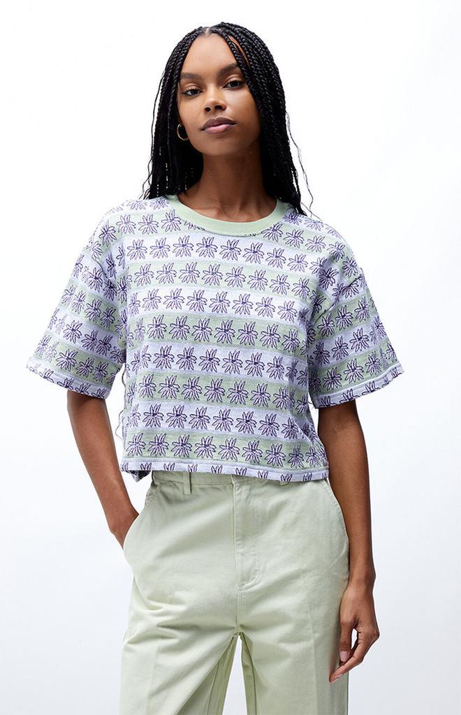 Wake up and smell the flowers in the new Jacquard Flower Boxy T-Shirt from OBEY. This boxy tee comes in a super cute flower print with a contrast crew neckline, short sleeves, and a cropped fit.