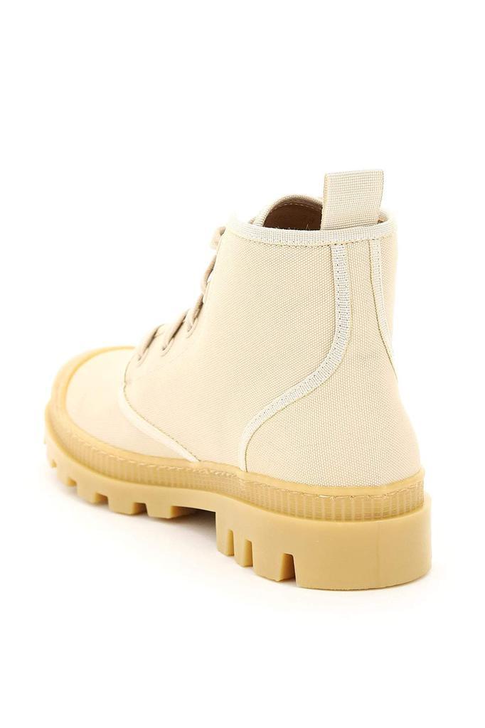 Perni 09 Hiking Boots by GIA X Pernille Teisbaek made from canvas with grosgrain trims, painted metal eyelets, back loop. Rubber-covered base and toe, leather interior, rubber lug sole. Craftsmanship.