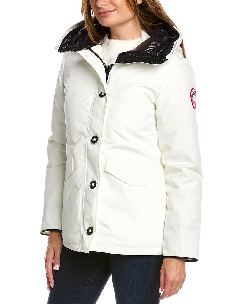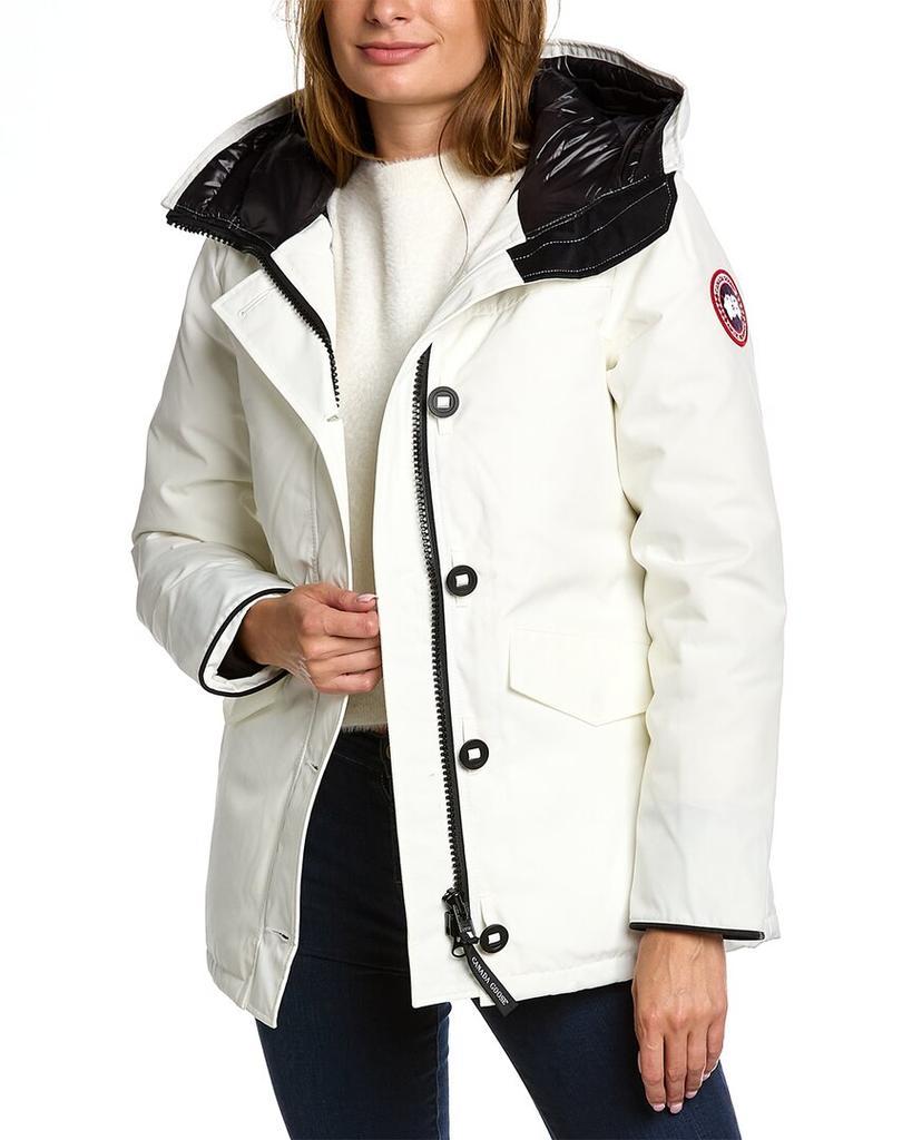 About The Brand - Canada Goose. Function-First Apparel With A Nod To Adventure. Lynnwood Parka In White With Funnel Neck With Attached Hood, Four Front Pockets, Ribbed Inner Cuffs And Quilted And Mesh Lining Approximately 28In From Shoulder To Hem Model Is 5'11 And Is Wearing A Size Small. Measurements May Vary Slightly By Size. Zipper Closure Button Front Lightweight Shell - 84% Polyester, 16% Cotton Lining - 100% Polyamide Fill - 80% Duck Down, 20% Feather Dry Clean Only Made In Canada