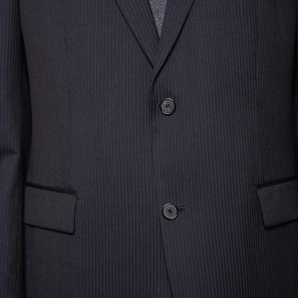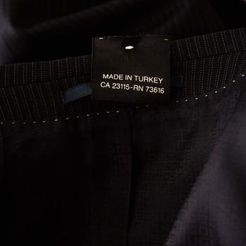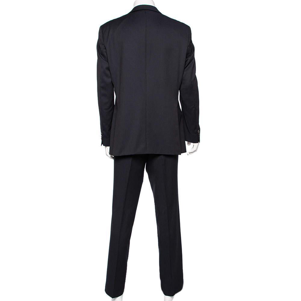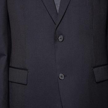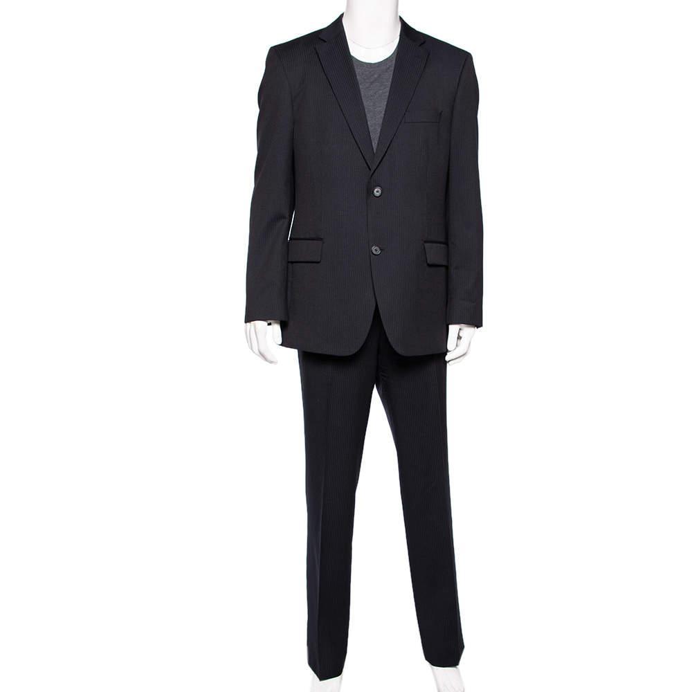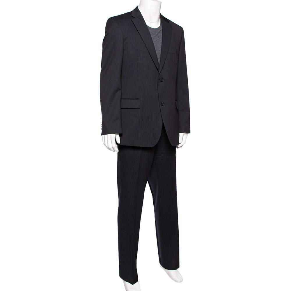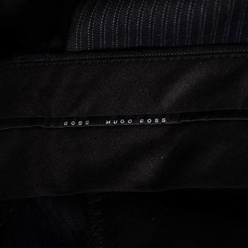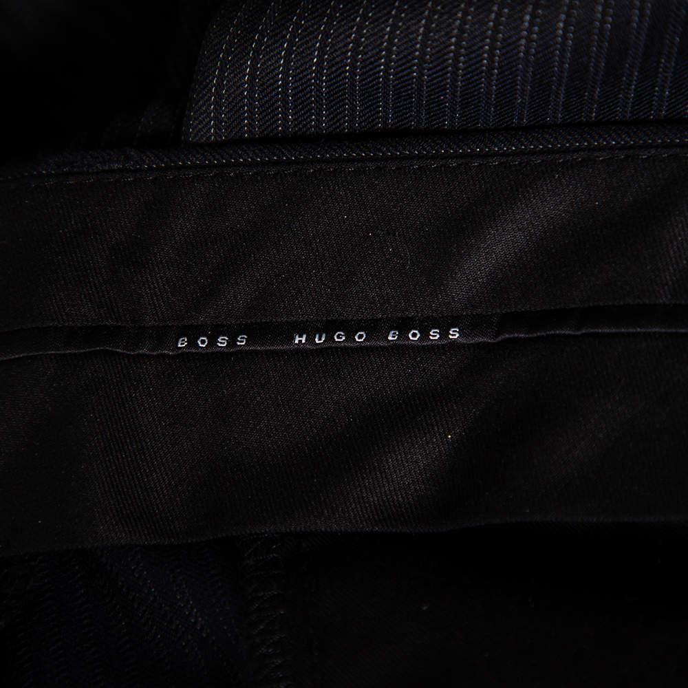 description: A well-tailored suit has the power to lend the wearer a refined formal look. This striped suit from Boss By Hugo is a classic creation meant to elevate your look. Cut from virgin wool, its blazer features double button fastenings, notched lapels, and front flap pockets. The trousers are finished expertly and offer a great fit.