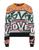 knitted, lightweight knit, brand logo, multicolor pattern, round collar, long sleeves, no pockets