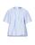 plain weave, logo, embroidered detailing, stripes, rear closure, self-tie wrap closure, short sleeves, round collar, no pockets