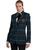 Notched lapel collar and long sleeves.