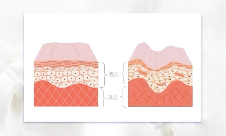 ▴ 左图为胶原蛋白充足的肌肤,右图为缺乏胶原蛋白的肌肤。