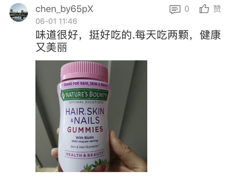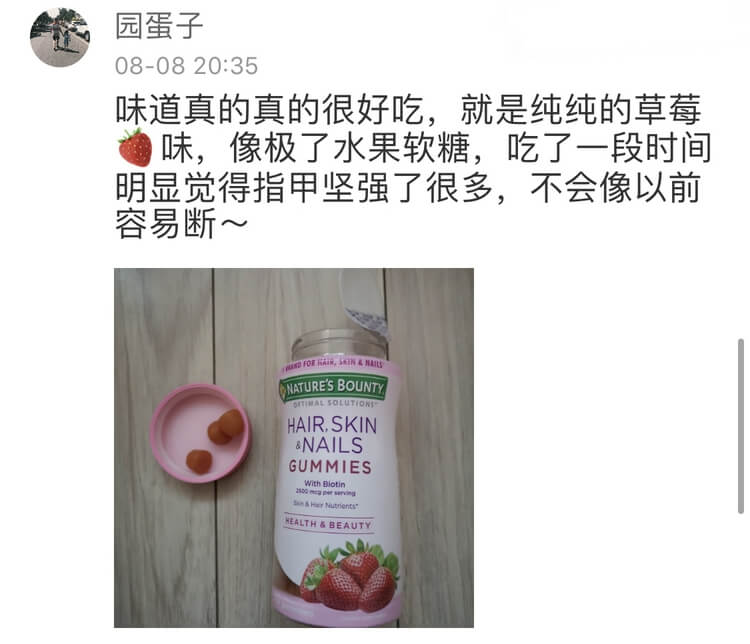 平时配合维生素的软糖在吃,每天晚餐后吃两粒,指甲颜色有变得健康,肤色有所改善。